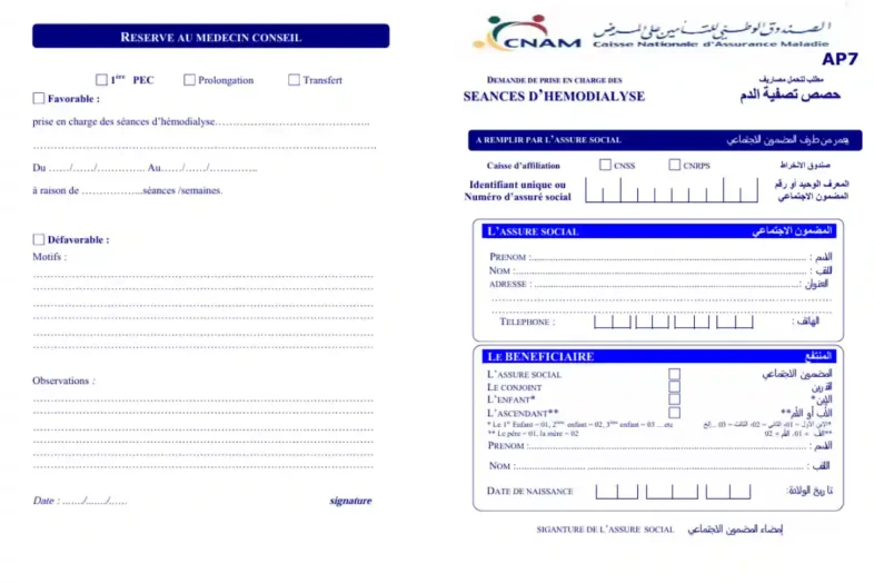 Télécharger le formulaire AP7 – Prise en charge CNAM Tunisie